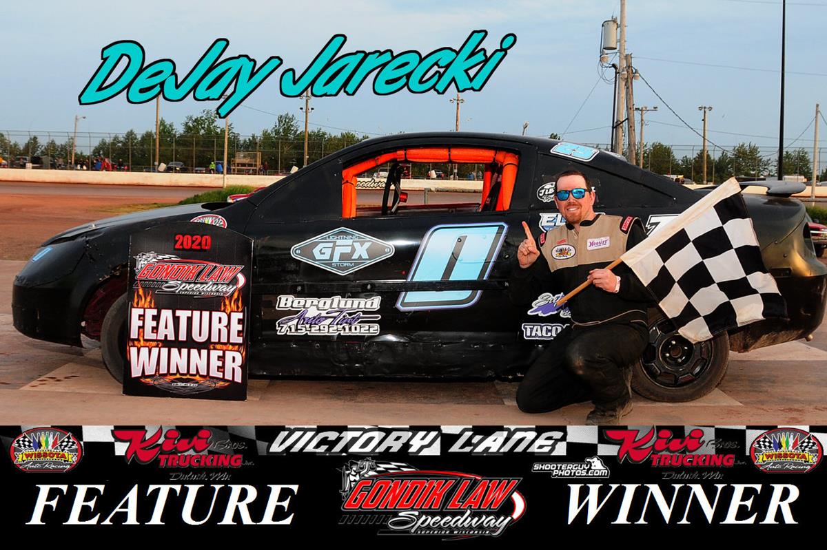In the Hornet main event, DeJay Jarecki outran a determined Hunter McDougall by a wide margin to win his first ever feature at Gondik Law Speedway. AJ House led early before Jarecki sailed by into the lead. House held on for a third place finish while Rick Long, Jr was fourth and the ever-present Kristi Marken was fifth.